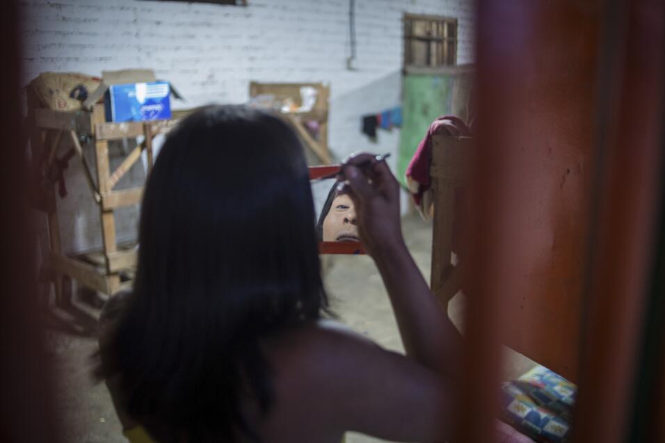 Angélica al momento de prepararse para salir. Cuenta junto a sus compañeras que está cansada de que algunos hombres las toquen o se les acerquen entre los arbustos o en medio de la noche. Víctor Galeano