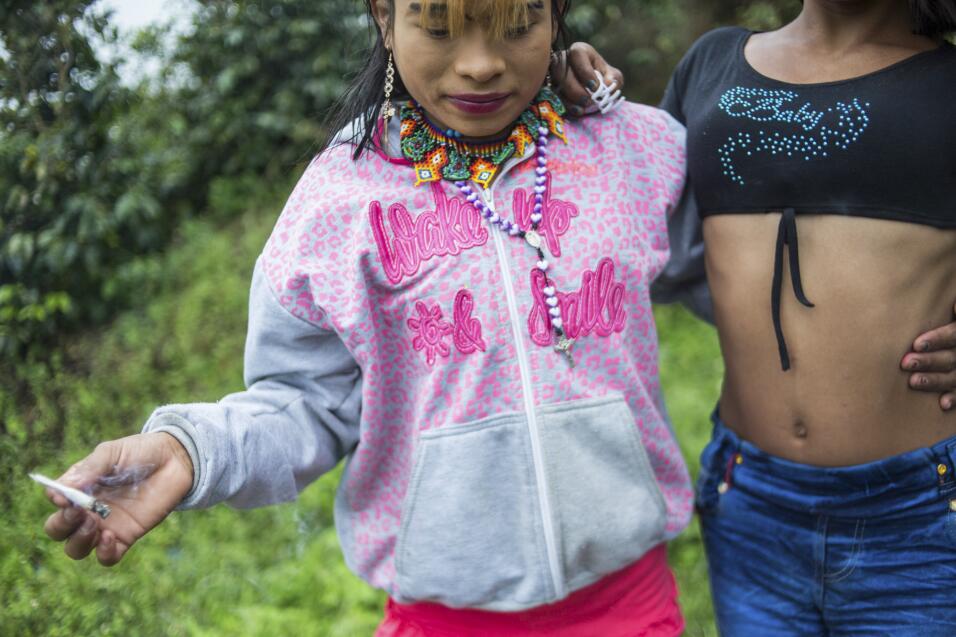 Con dos palabras, Elsa también dejó atrás todo lo que conocía y partió a la deriva sin documentos. A los 15 años, dice que no tiene fronteras. Su comunidad ahora es un grupo de adolescentes que pelea cada día con lo que significa ser mujer. Angélica tiene 16. Viviana, también. Johana, 15. Yulisa, 14. De una veintena, solo dos admiten tener 18 o más. Pero ellas viven al margen, con su idioma y sus interrogantes y sus novios, también indígenas Embera porque rara vez alguien en su comunidad se junta con un blanco, un negro o un indígena de otro grupo. En Santuario, nadie se mete en los temas de los “indios”. Cobran al día o al kilo, depende de la época, y las cuentas quedan saldadas cada sábado. De ahí pueden volver a empezar. Con otro nombre o con el mismo. El número de cédula: “no tengo”. Nadie pregunta. Cuando se aburre, Elsa piensa en irse a la ciudad y vender artesanías o a venderse. La prostitución es lo que ha visto que hacen las ‘trans’ blancas.