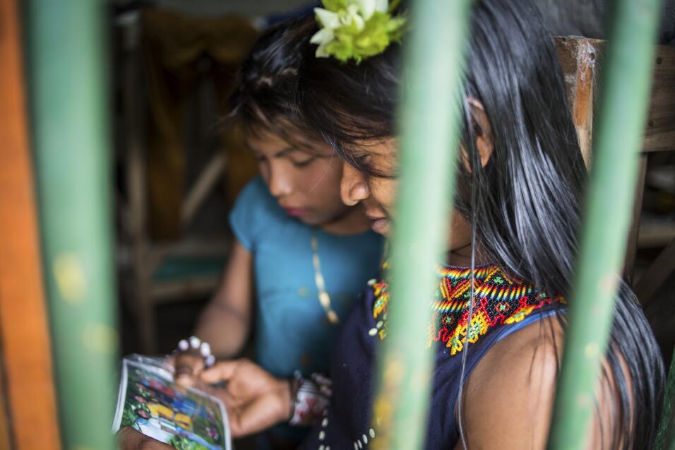 Johana, Eliana y Viviana, son tres de las mujeres de la etnia Embera que encotraron refugio en Santuario. Víctor Galeano